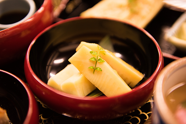 大覚寺の精進料理は、京野菜や色鮮やかな食材を添え、味はもちろん見た目にもこだわった料理を多数ご用意しております。